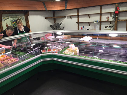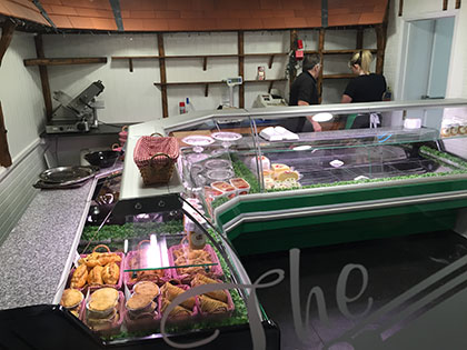 In the summer of 2015 David and Nicky decided that their business needed a major 'facelift' in the delicatessen shop. SOS designed a new corner chiller to best suit the size restricted sales floor, with efficiently, noise and ambient temperature of the deli in mind we buried pipework and services to the new chiller under the floor and sited the condensing unit outside.